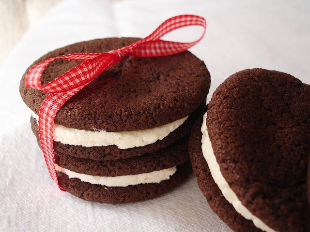 Cookies de chocolate com recheio de baunilha (Oreos caseiros)